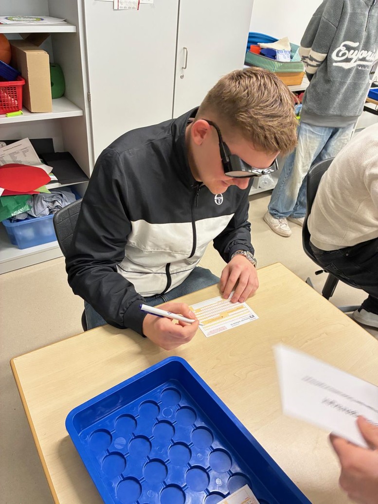Im Rahmen des Projekts „Coaching Kompass – Perspektivwechsel“ hatten die Schülerinnen und Schüler der Jahrgangsstufen 7-10 der Martin-Bartels-Schule verschiedene Stationen vorbereitet. Dort konnten die angehenden Bankkaufleute durch praktische Übungen selbst erfahren, welche Herausforderungen eine Sehbeeinträchtigung im Alltag – und auch im Berufsleben – mit sich bringen kann.